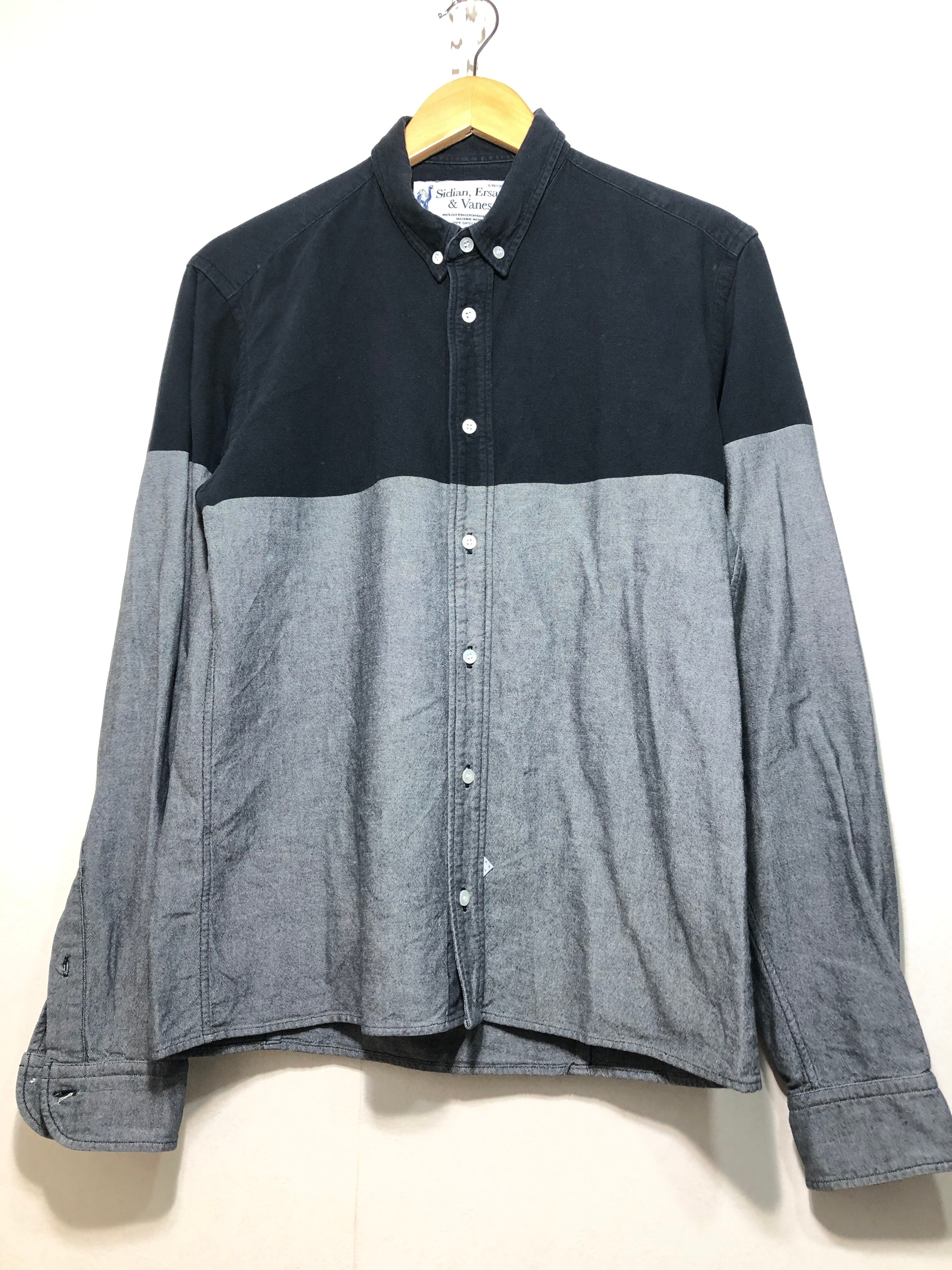 109060 Sidian,Ersatz & Vanes FRANCE 長袖 ツートン シャツ S シディアンエサーツアンドヴェインズ