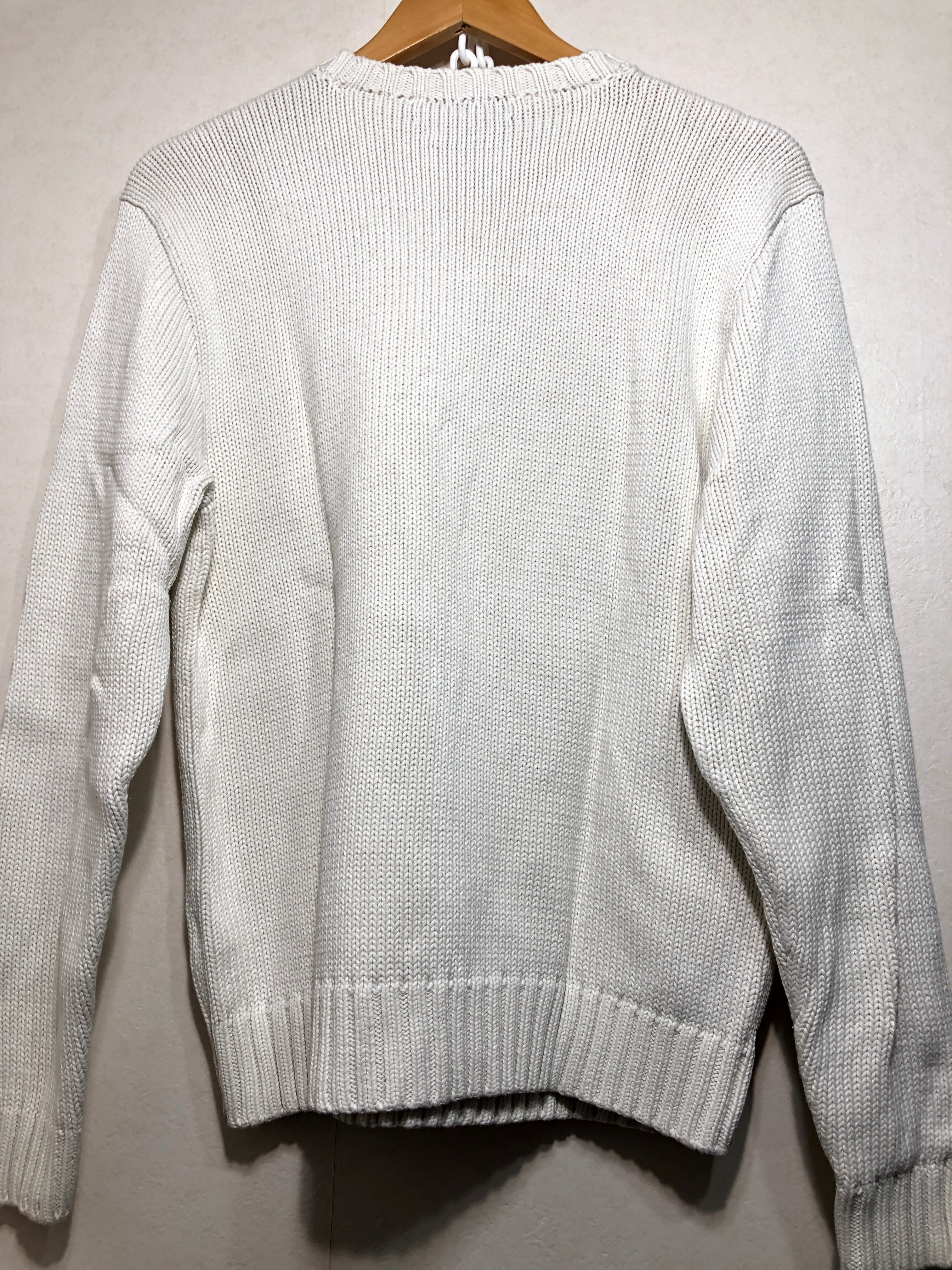 010111 POLO by RALPH LAUREN 100% COTTON Vネック コットン ニット M ホワイト セーター ポロ ラルフローレン