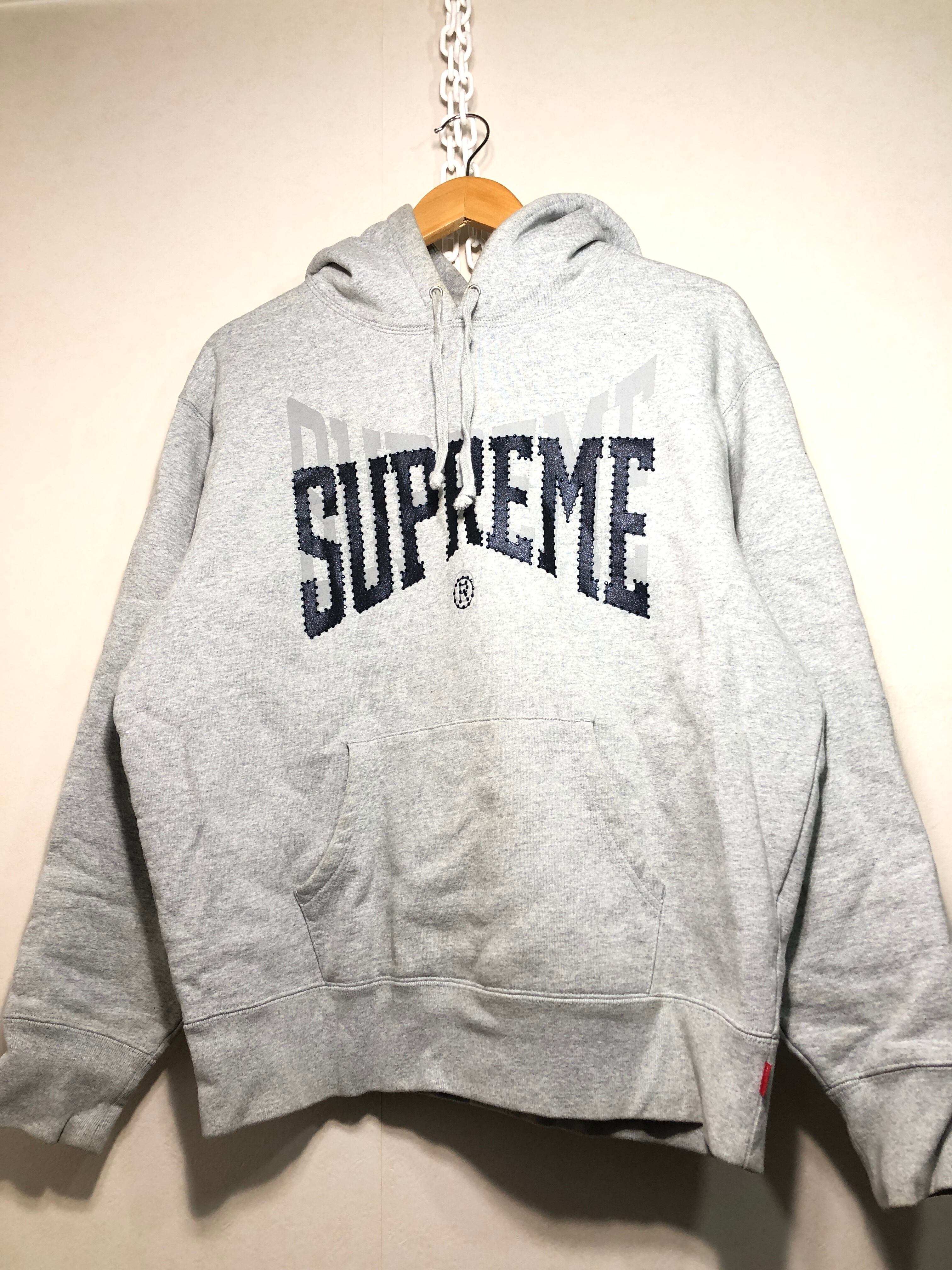 072103 Supreme Rhinestone Shadow Hooded Sweat S ロゴ ラインスローン シャドー パーカー グレー シャドウ シュプリーム
