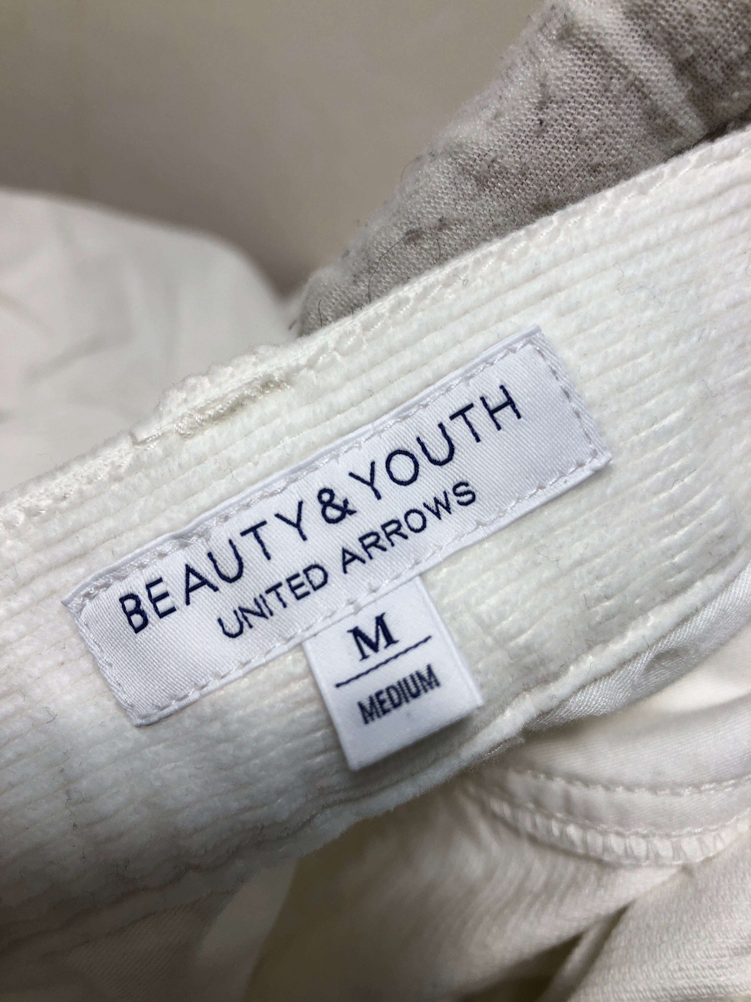 501011 BEAUTY&YOUTH UNITED ARROWS 14W コーデュロイ テーパード パンツ M ホワイト レディース 1614-699-5415