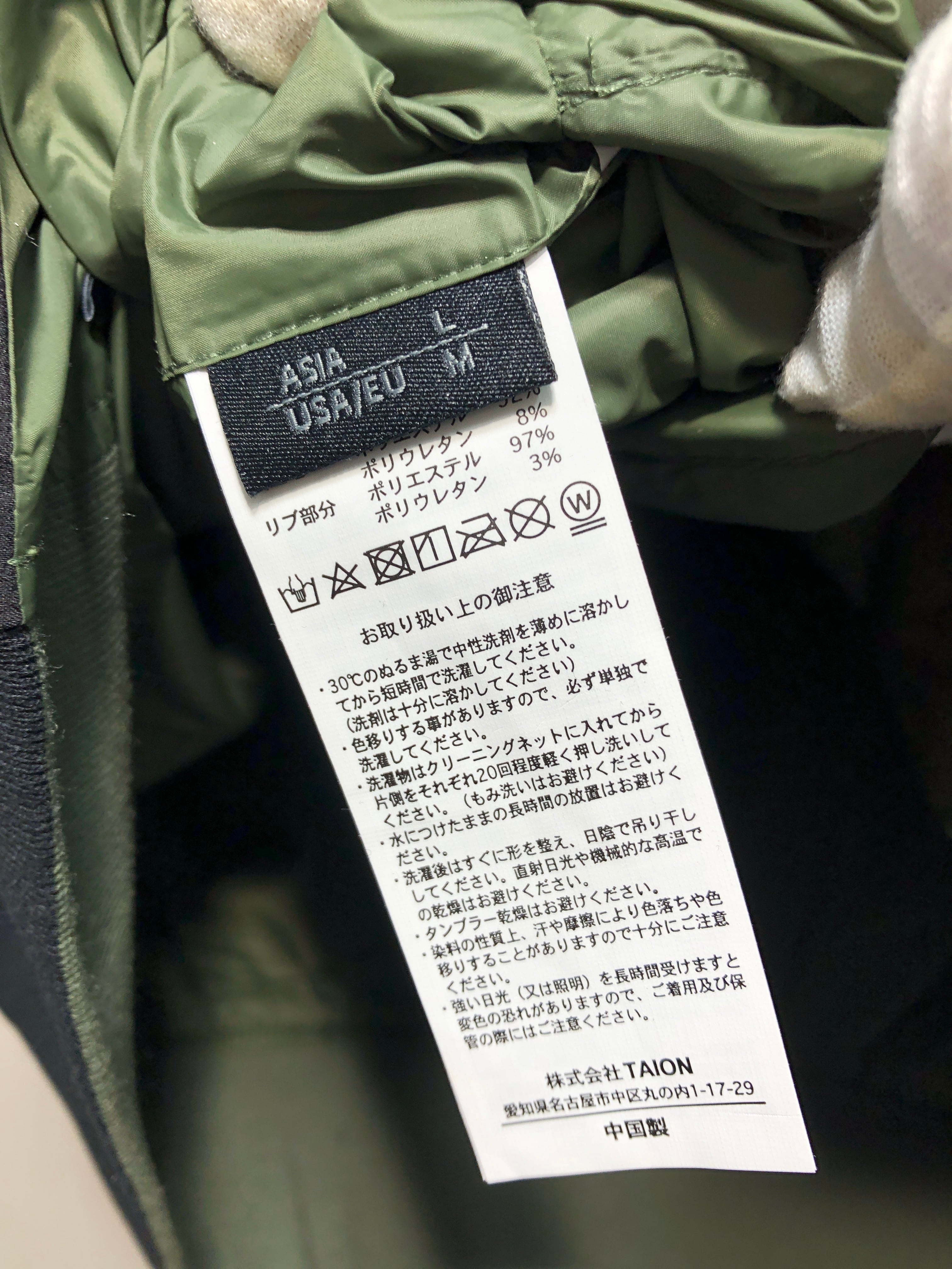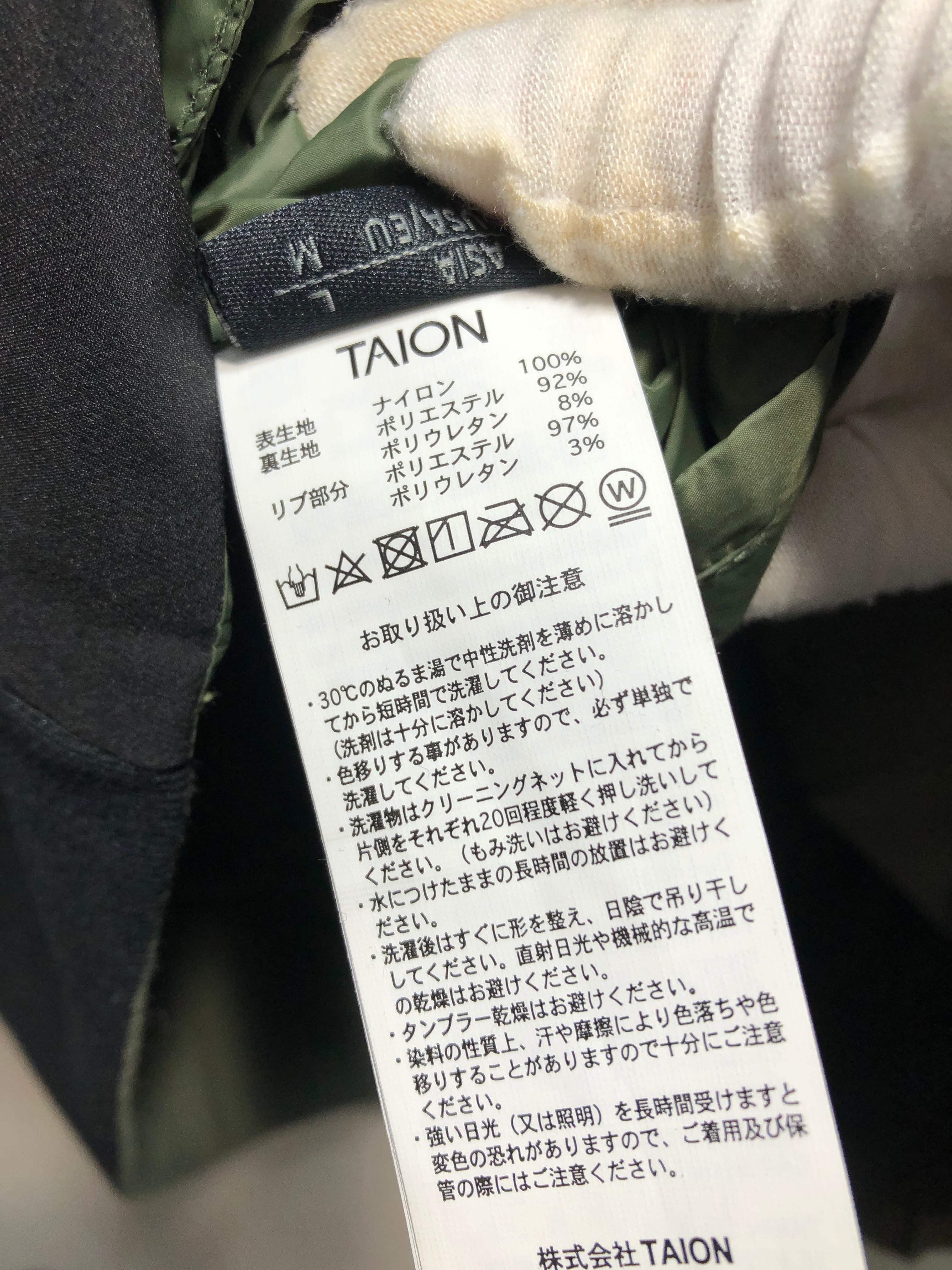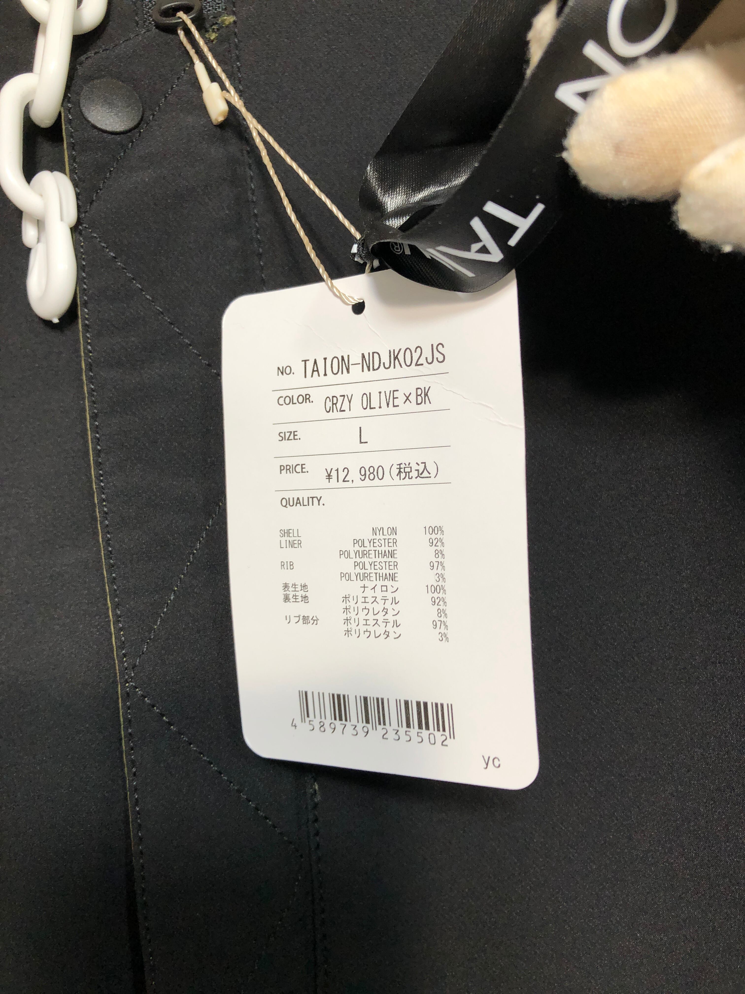 042090 未使用 TAION JAPAN SPECIAL NON DOWN REVERSIBLE MA-1 TYPE JACKET L オリーブ ブラック ノンダウン ジャパン スペシャル リバーシブル TAION-NDJK02JS タイオン