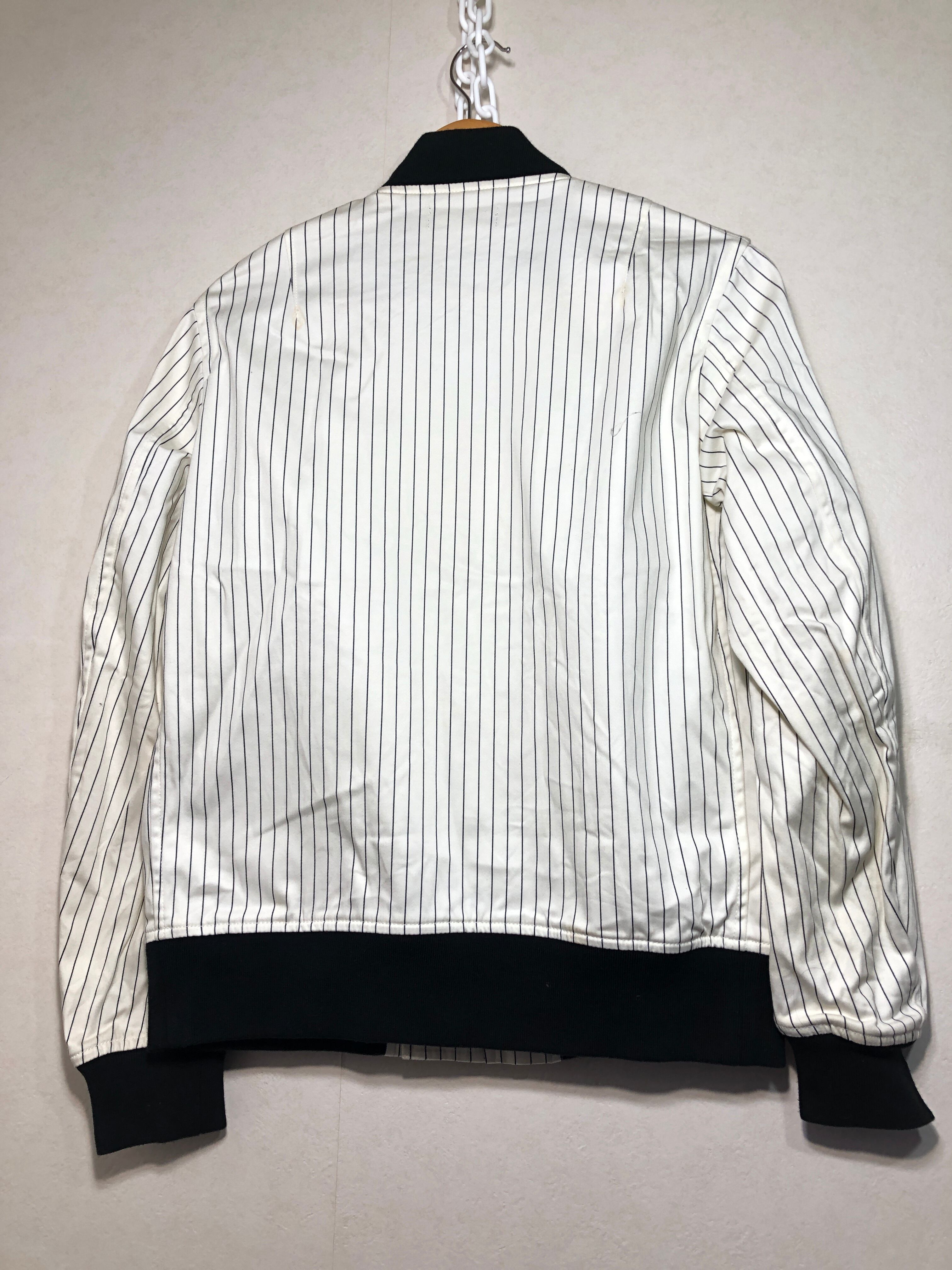 022001 FRED PERRY PINSTRIPED BOMBER JACKET XS ストライプ ジップ ピンストライプ ボンバー ジャケット フレッドペリー FREDPERRY