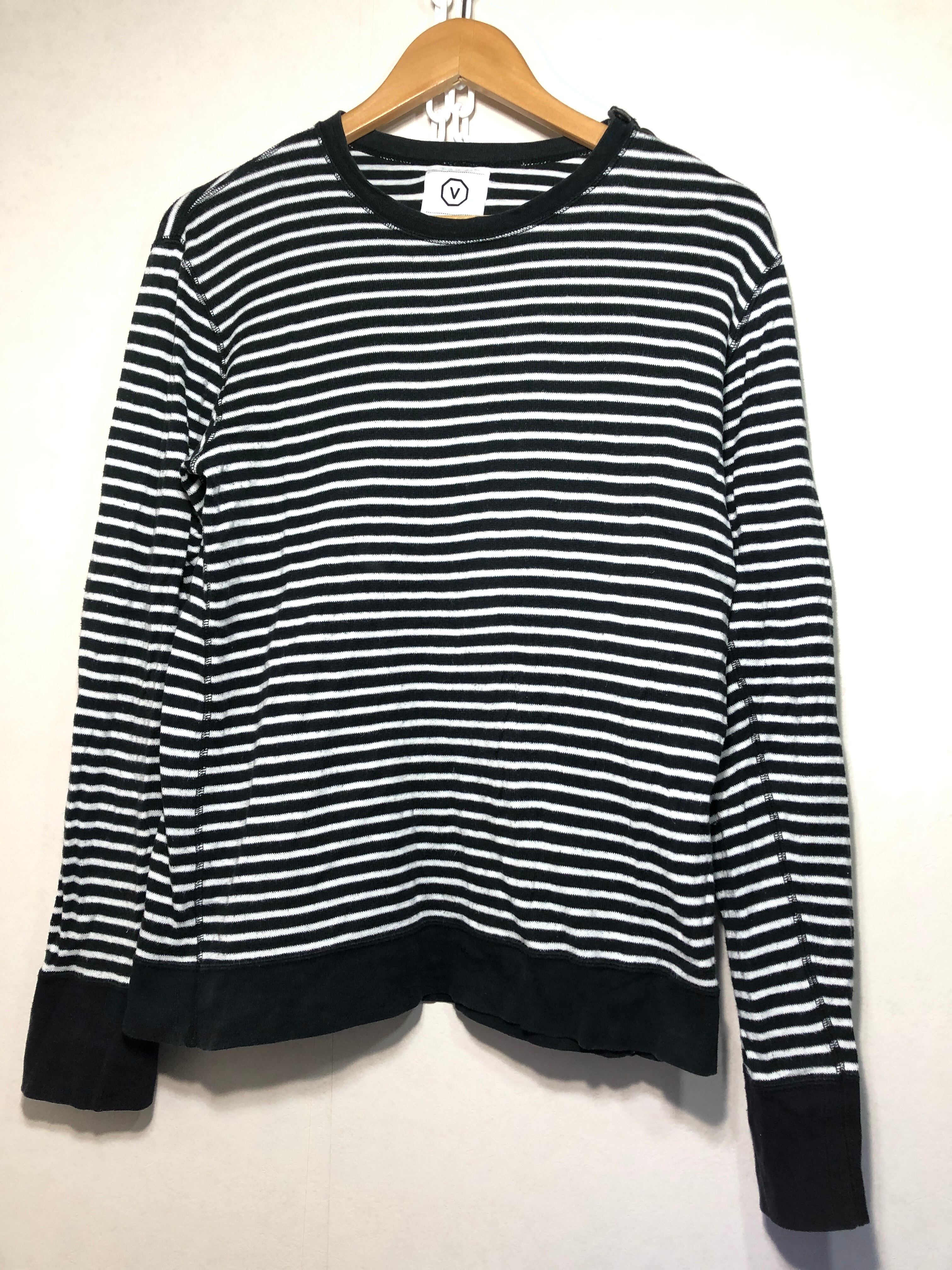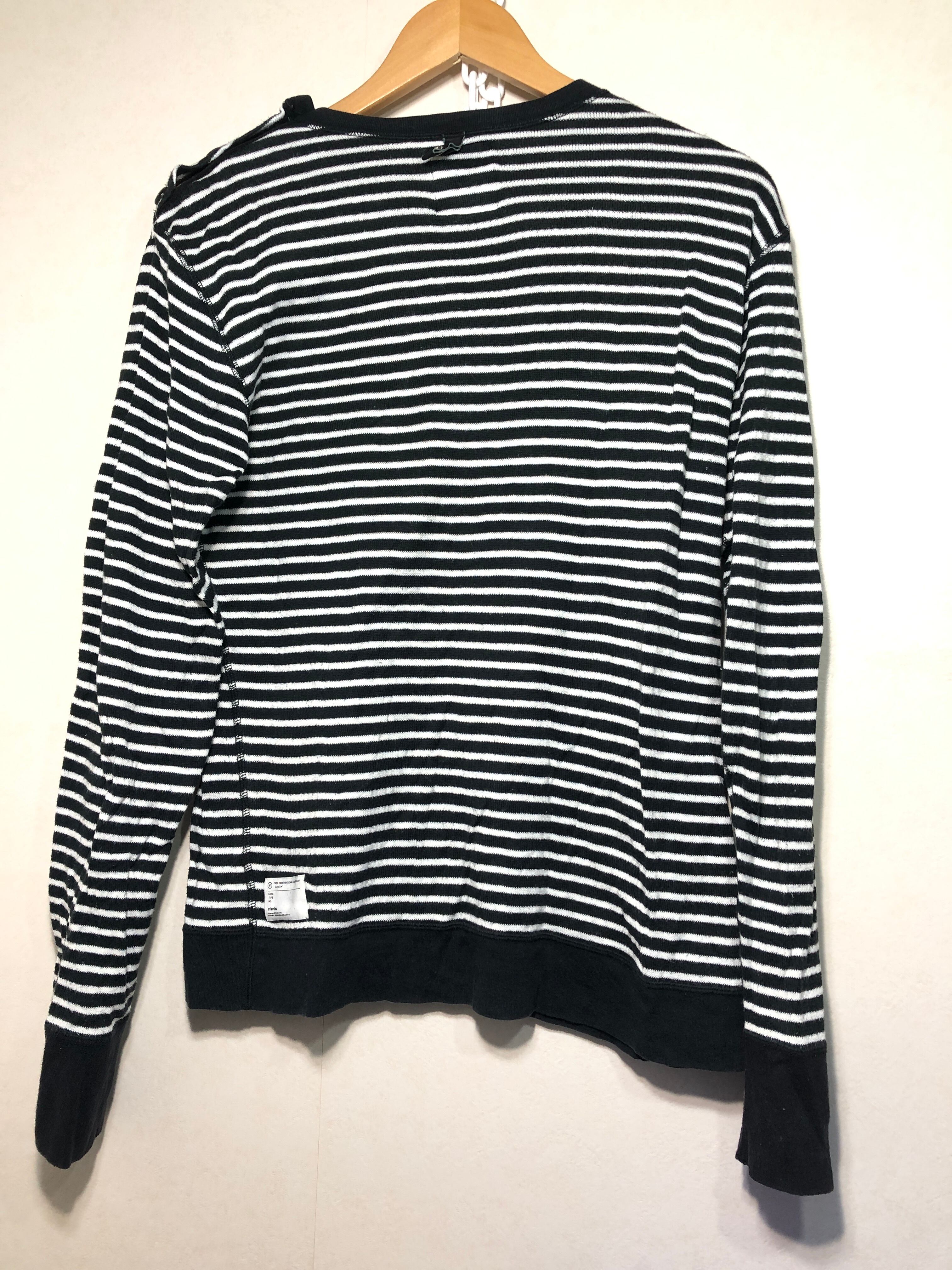 702041 visvim 長袖 ボーダー コットン ニット カットソー ブラック ホワイト ビズビム ヴィズヴィム