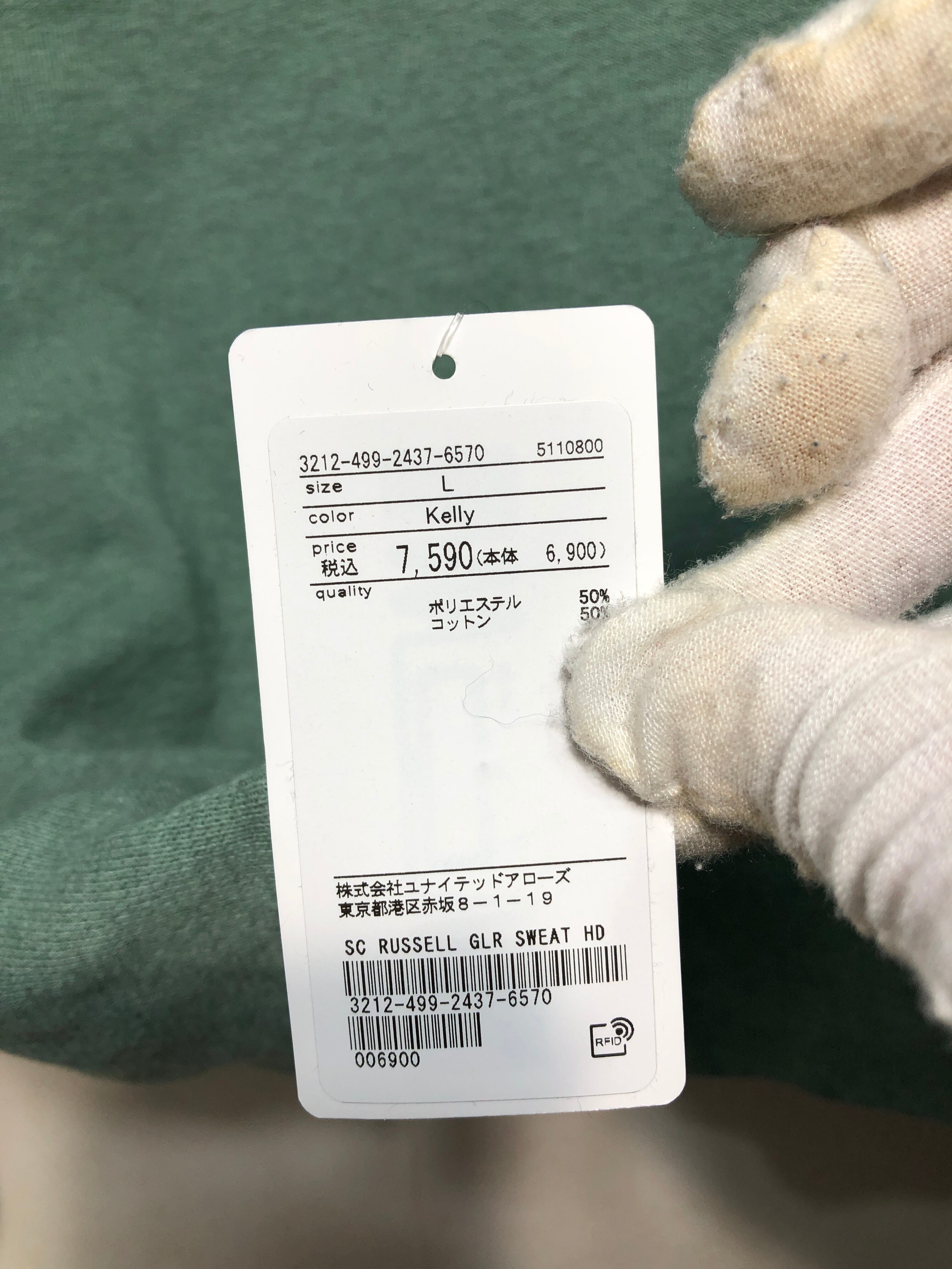 202051 未使用 RUSSELL ATHLETIC パーカー L kelly 裏起毛 green label relaxing UNITED ARROWS ラッセルアスレチック