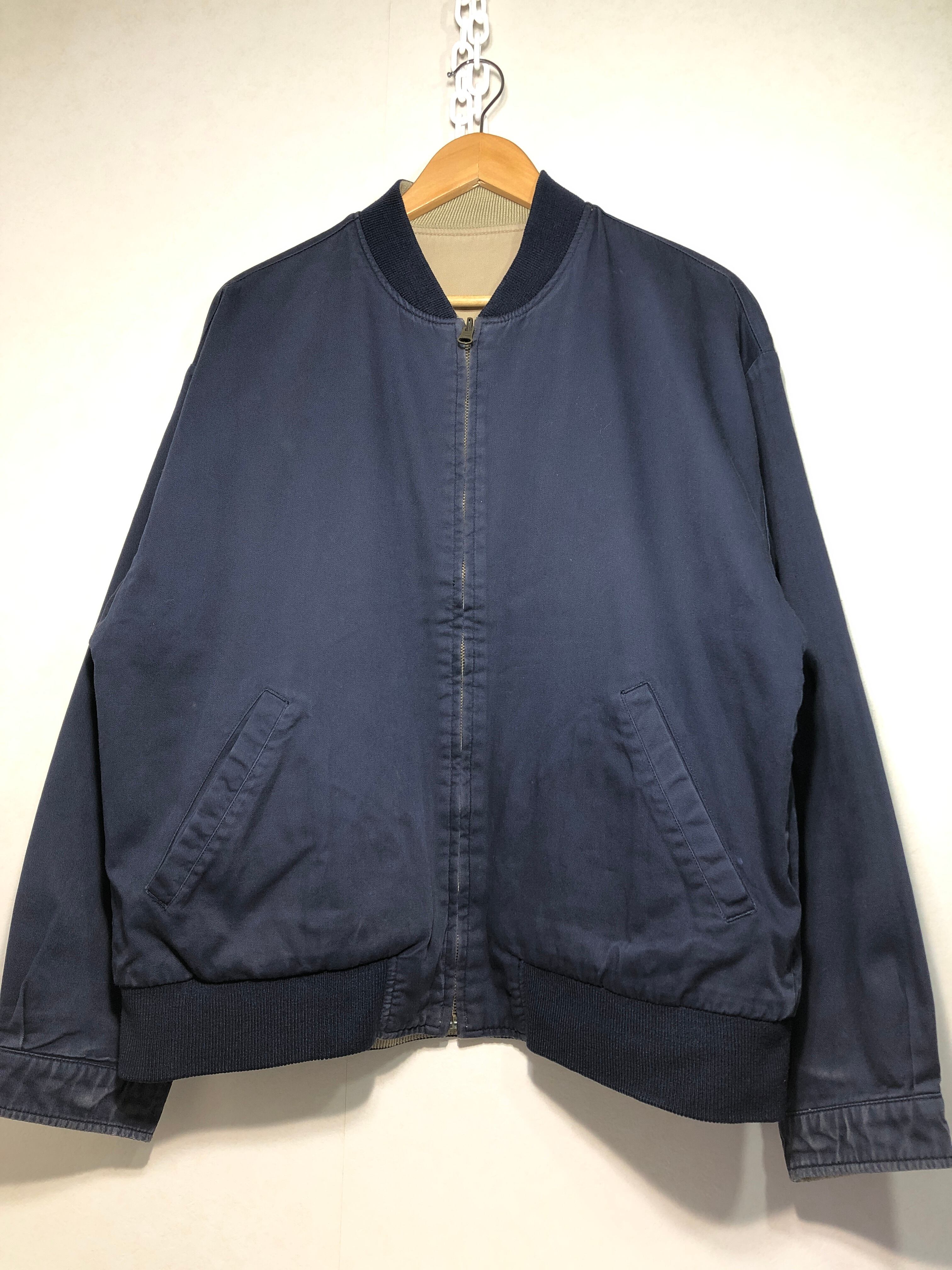 212071 LANDS' END リバーシブル ジップ ジャケット L ネイビー ベージュ ランズエンド