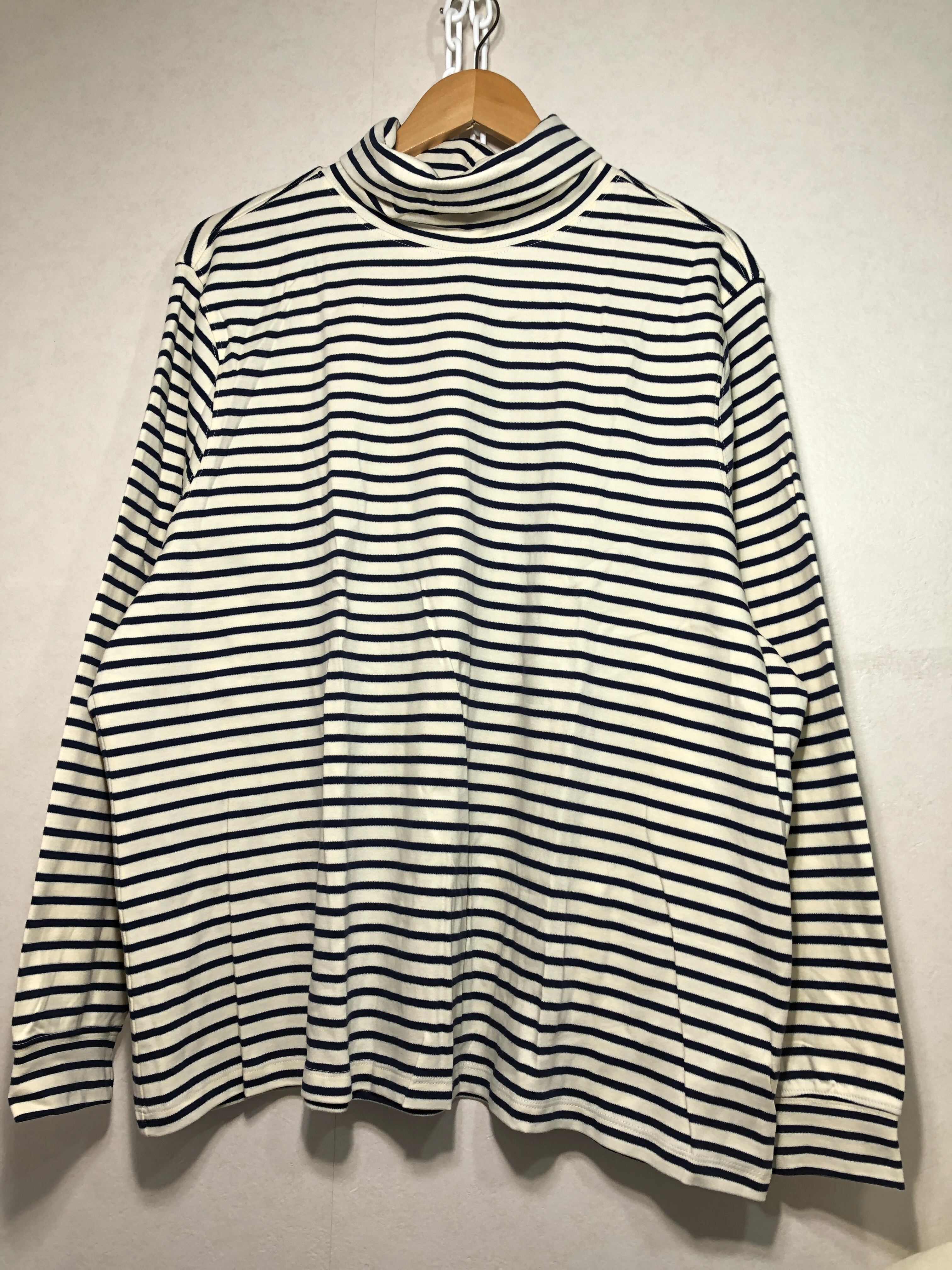 702012 L.L.Bean 長袖 ボーダー タートルネック カットソー 3X PLUS ハイネック ロンT