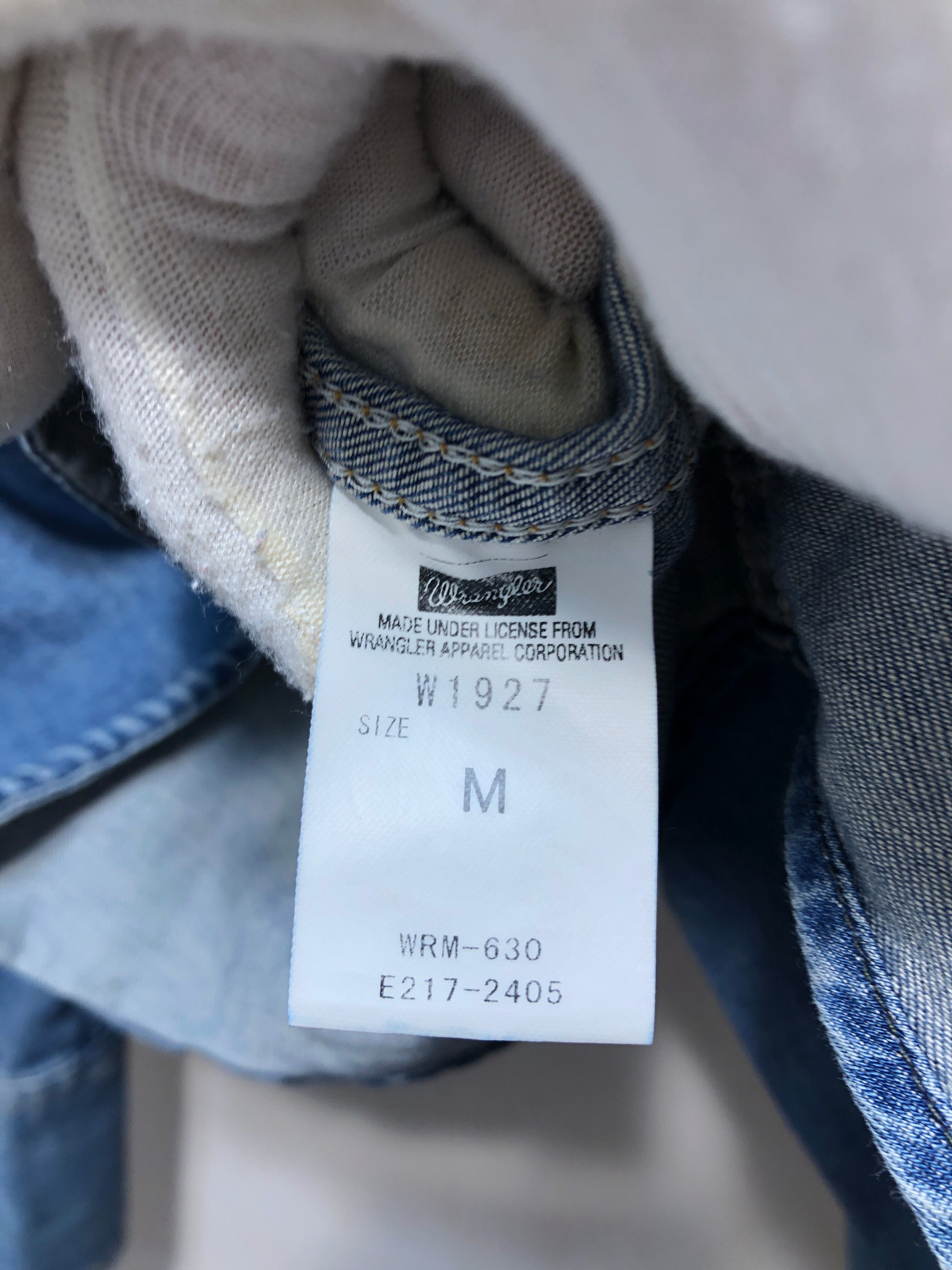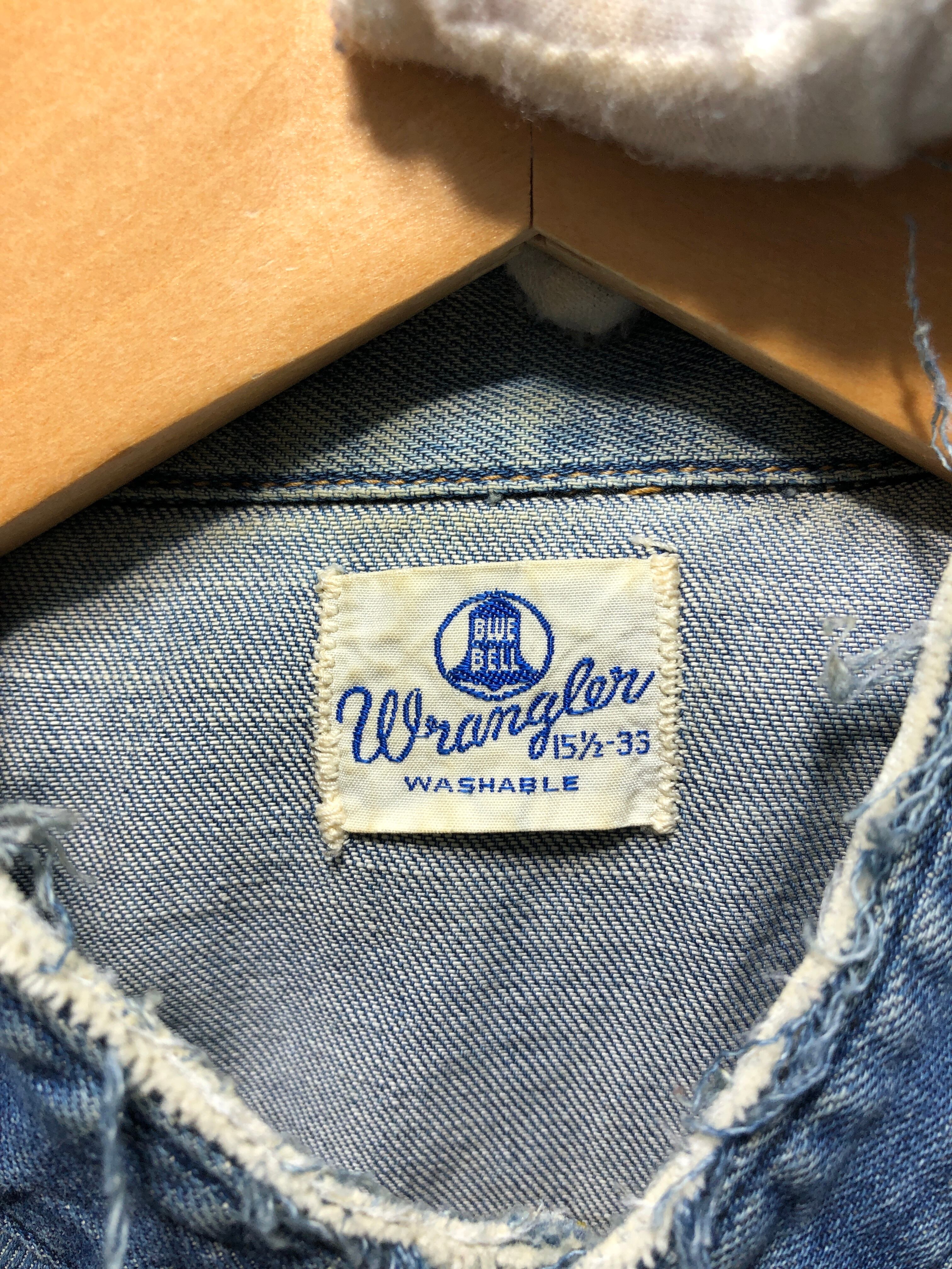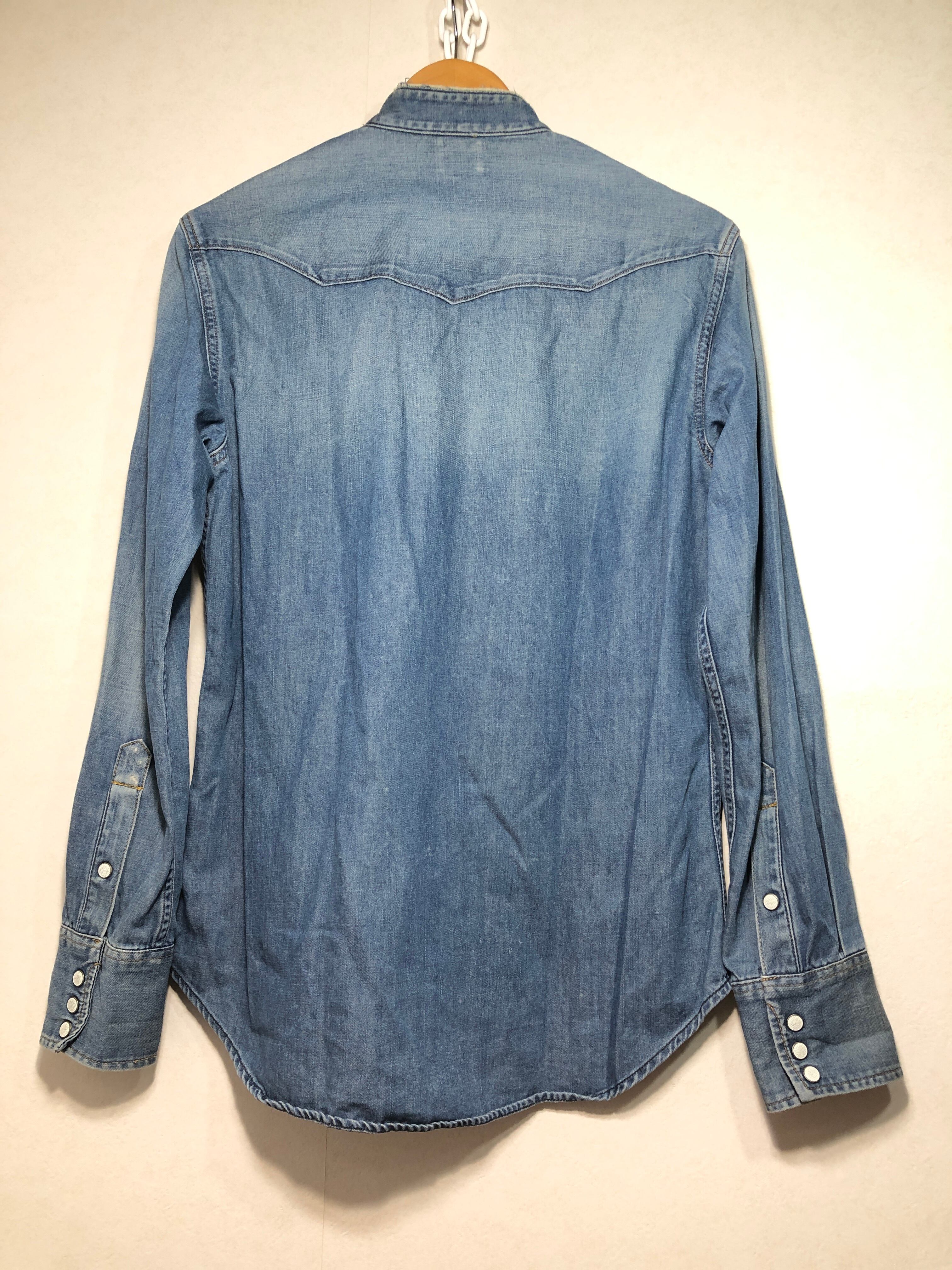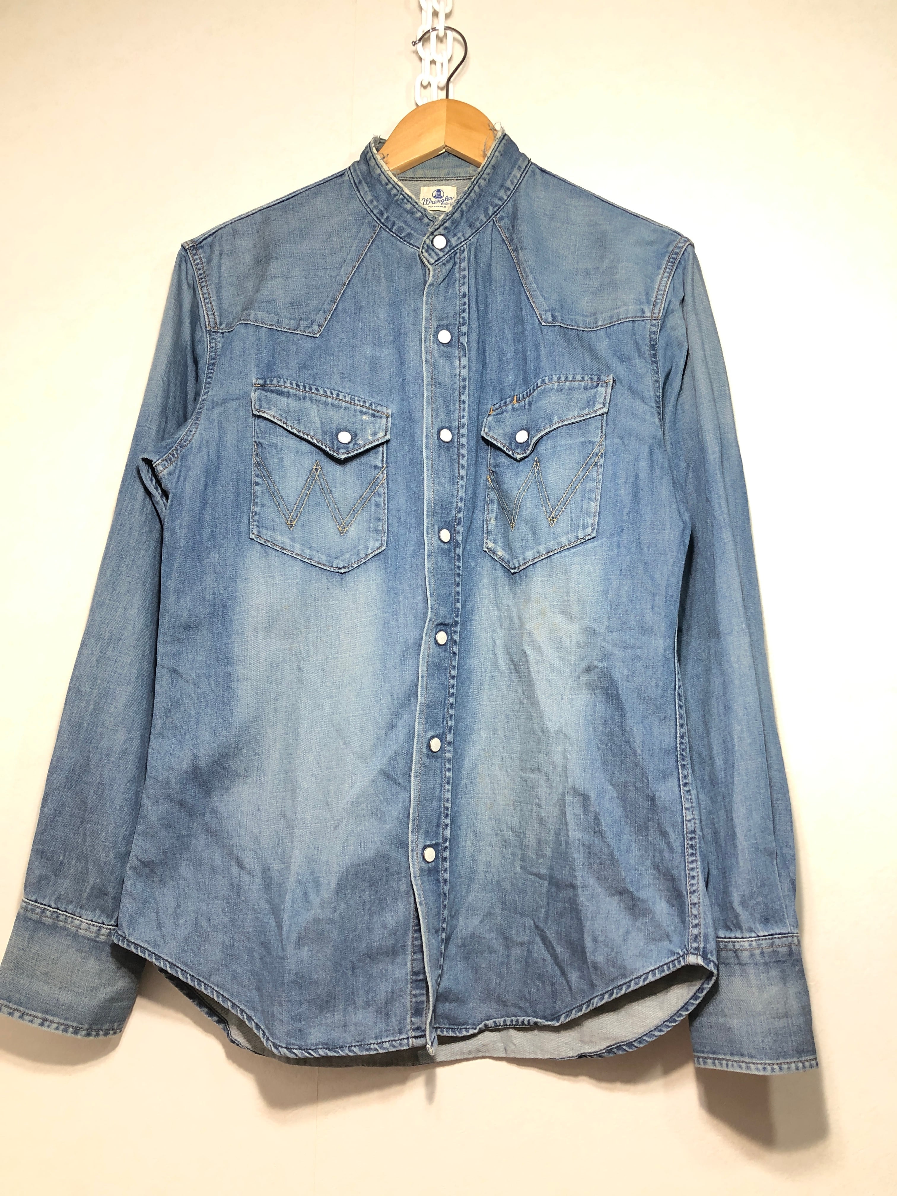 012032 wrangler W1927 長袖 デニム ウエスタン シャツ M ダメージ加工 ラングラー