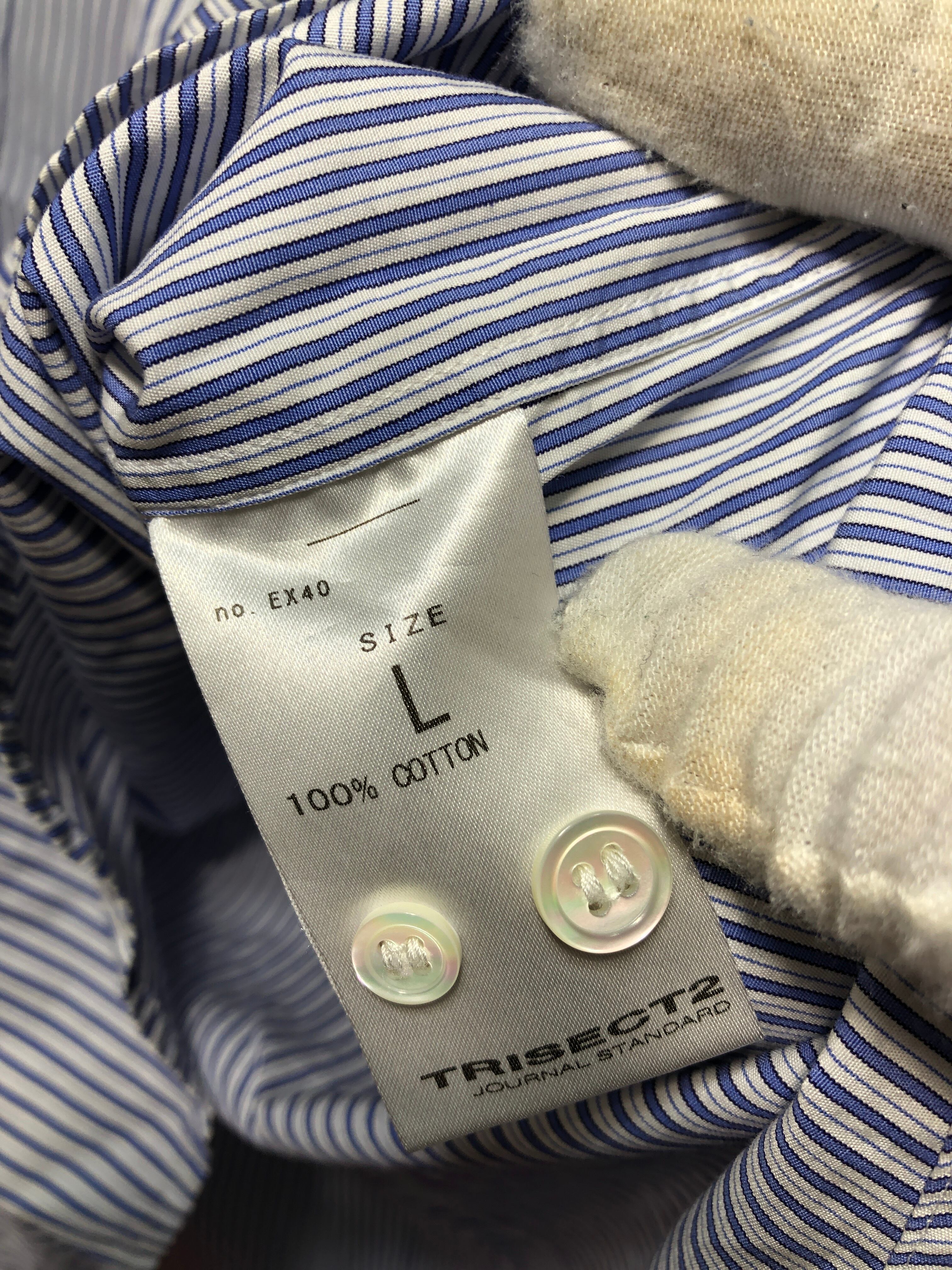 703020 JOURNAL STANDARD TRISECT2 The FAT Shirt THOMAS MASON 長袖 スタンドカラー ストライプ シャツ L ジャーナルスタンダード