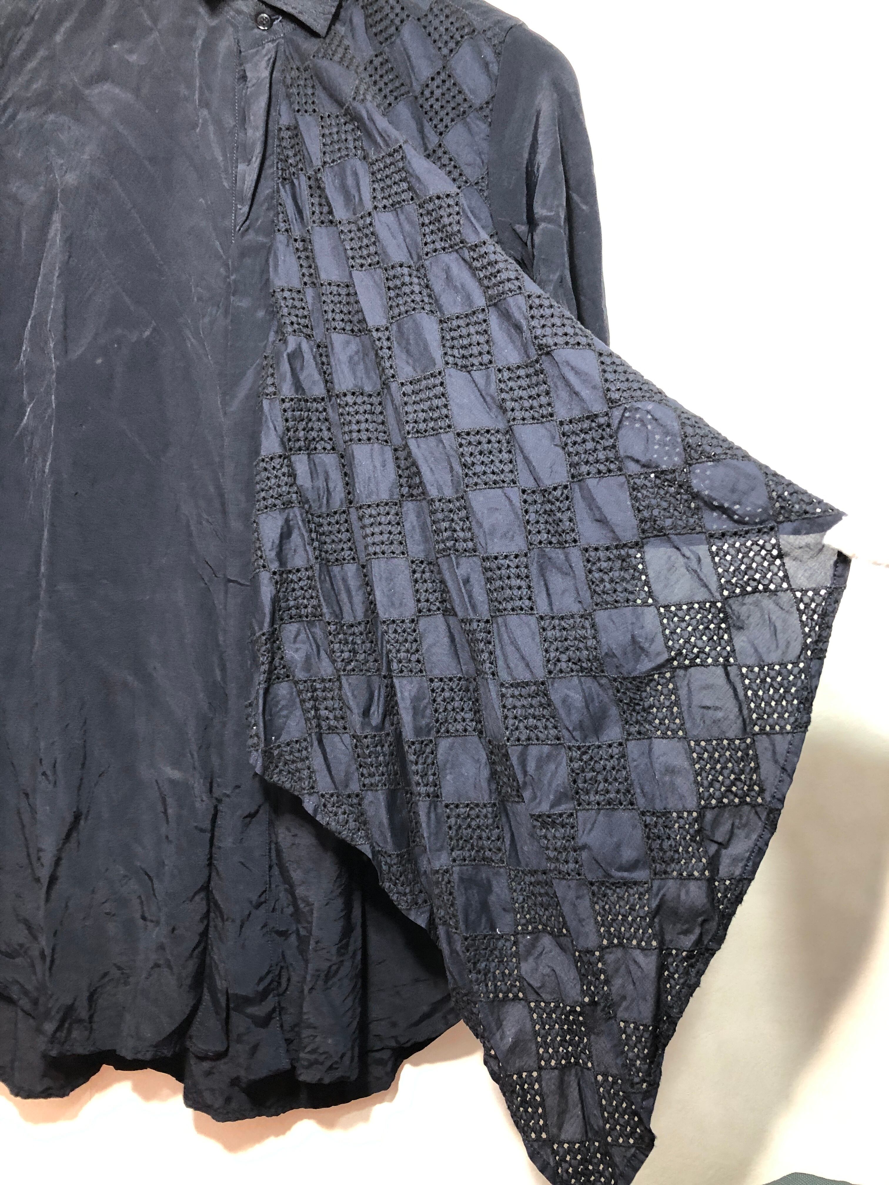 023070 Y's PINK LABEL 長袖 レース シルク混 シャツ 2 ブラック レディース YG-B22-011 ワイズ yohji yamamoto ヨウジヤマモト