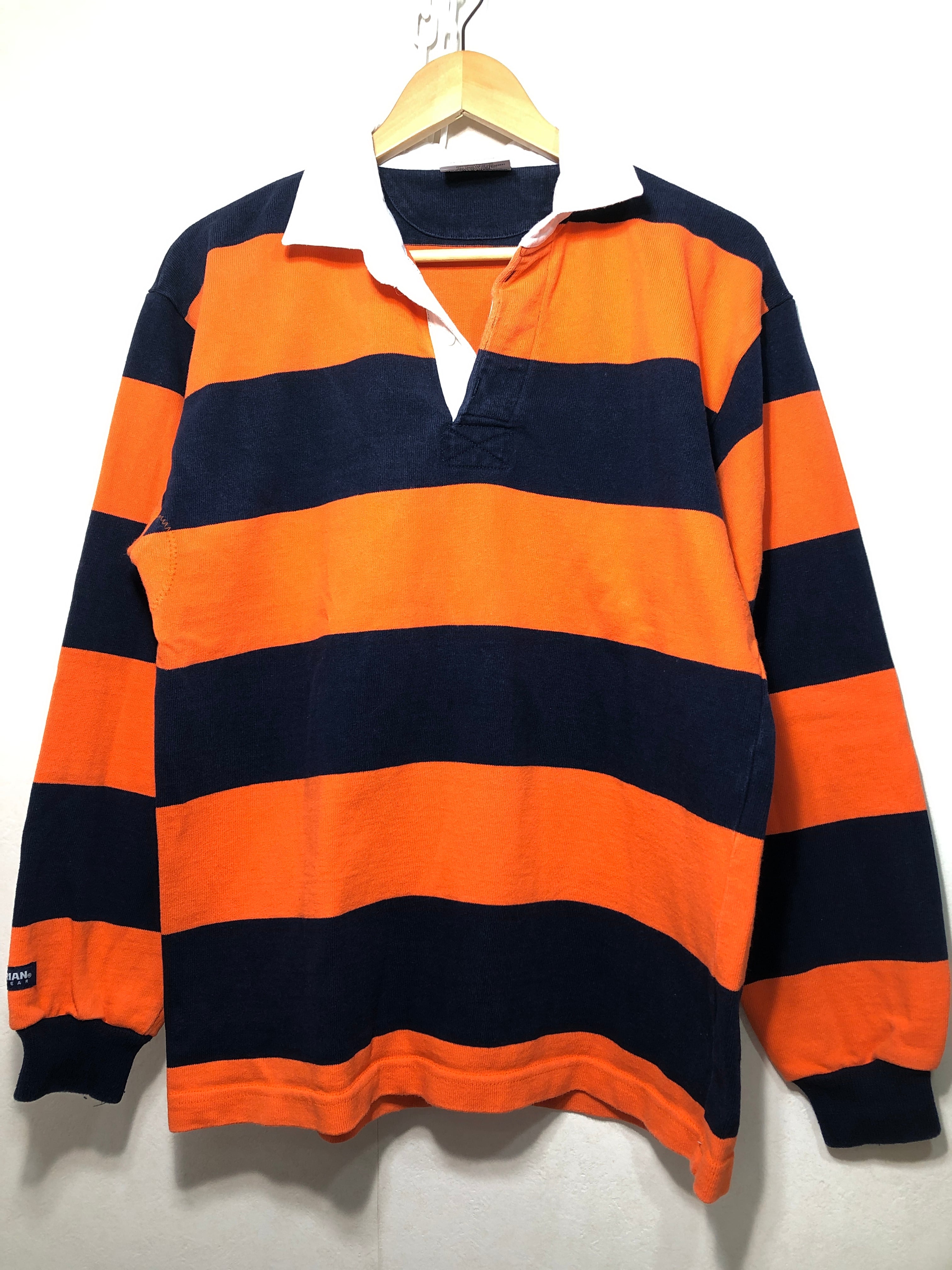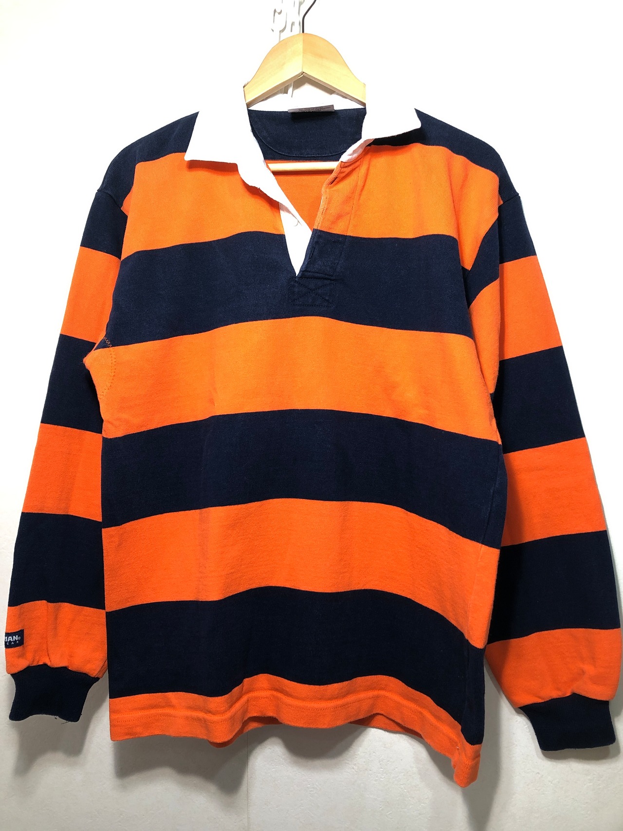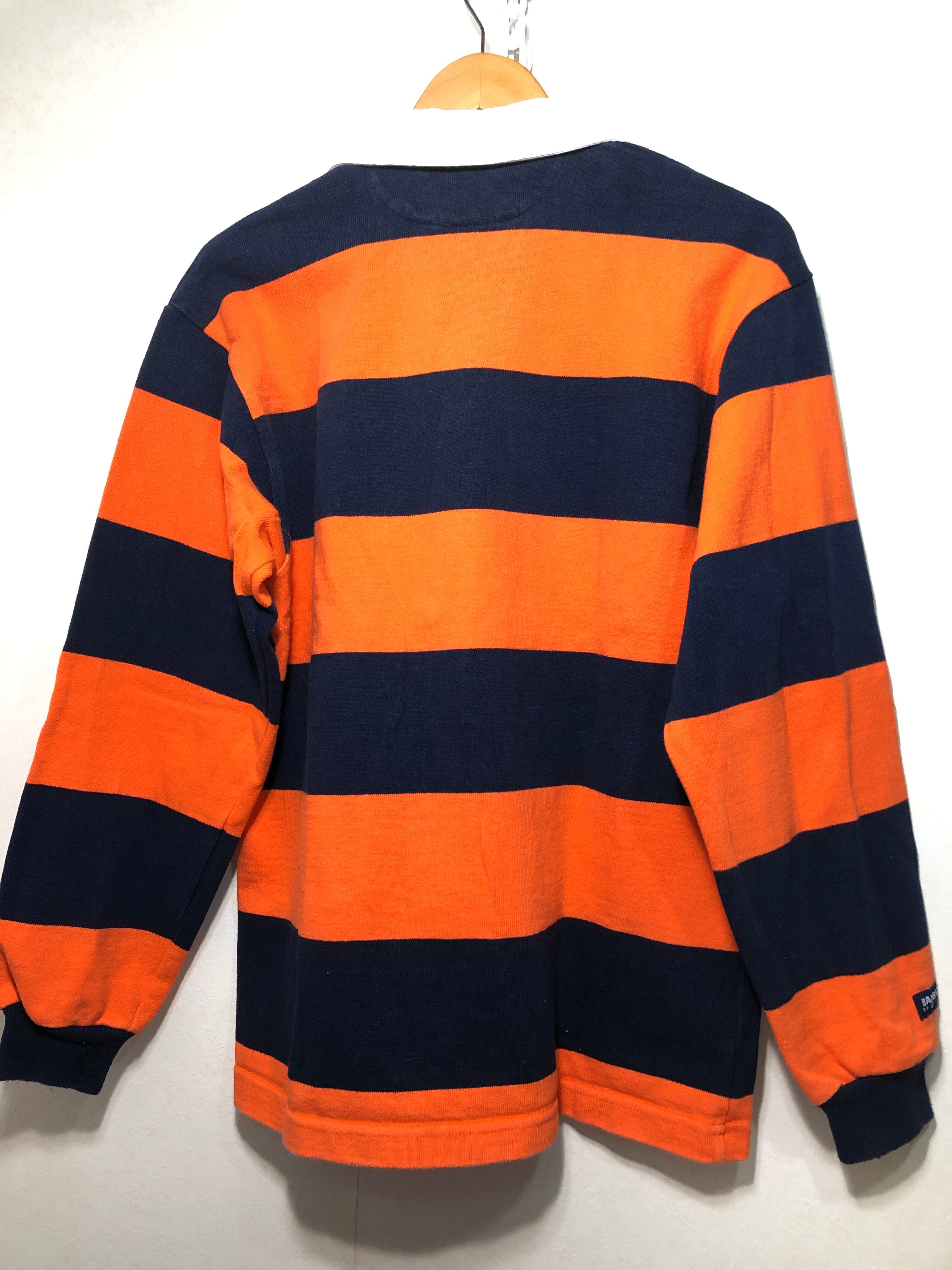 703011 BARBARIAN 長袖 ボーダー ラガーシャツ M オレンジ ネイビー ポロシャツ バーバリアン