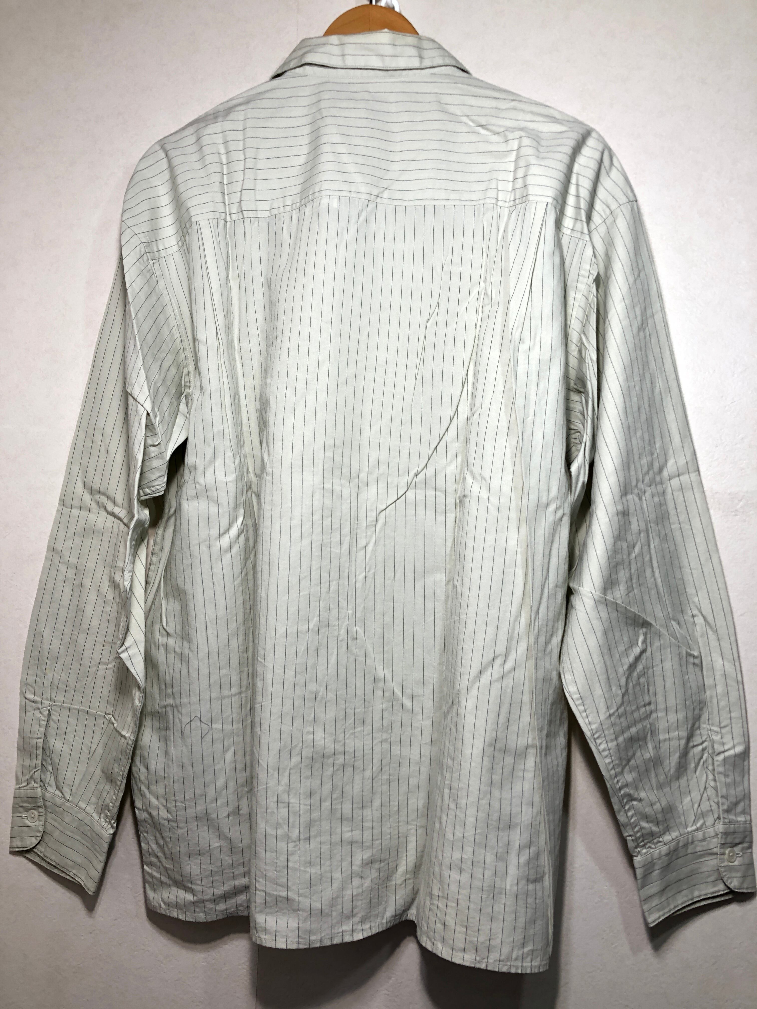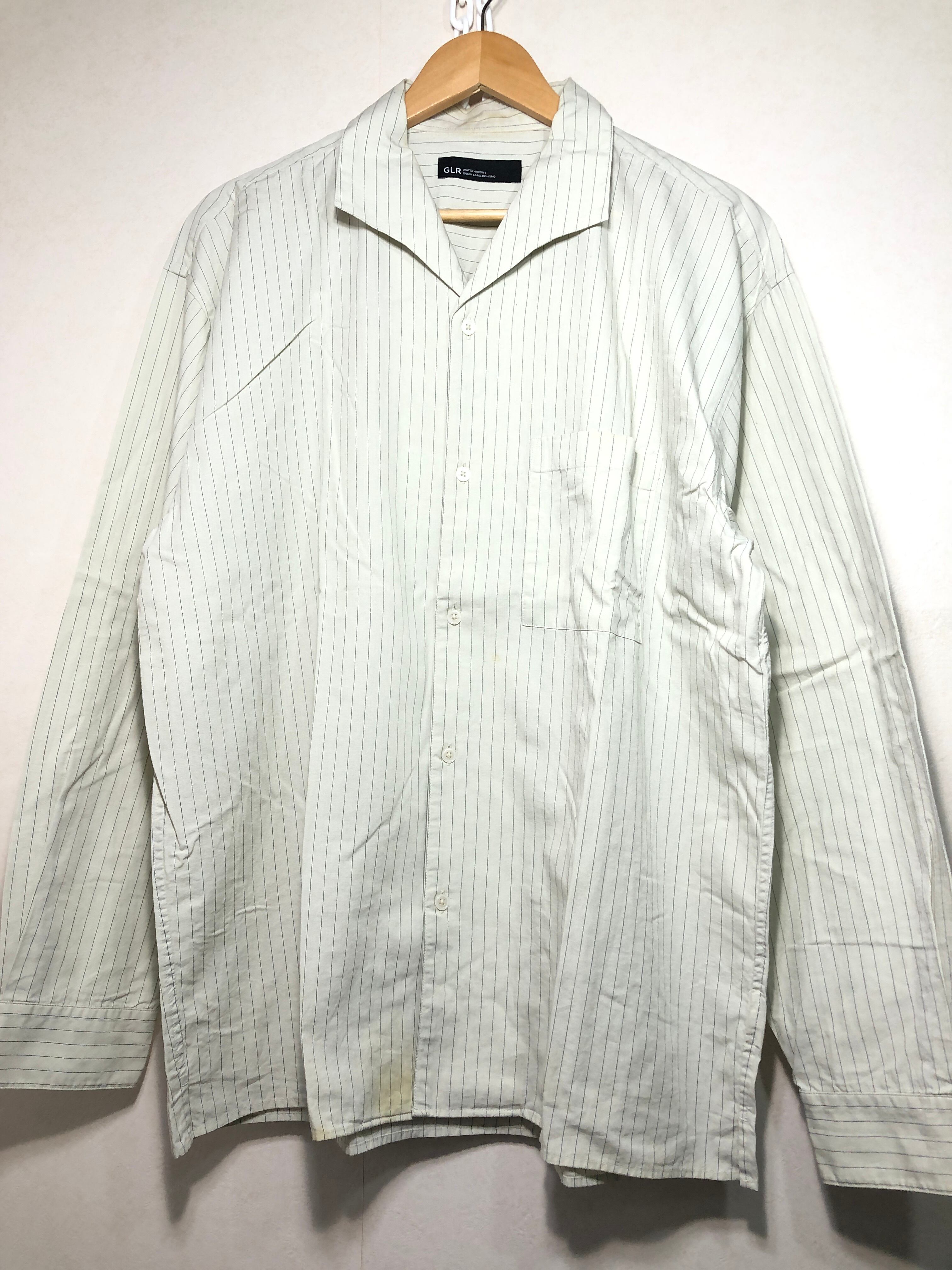 503012 green label relaxing コットン リネン 長袖 ストライプ オープンカラー シャツ L UNITED ARROWS グリーンレーベル リラクシング 3211-166-3224