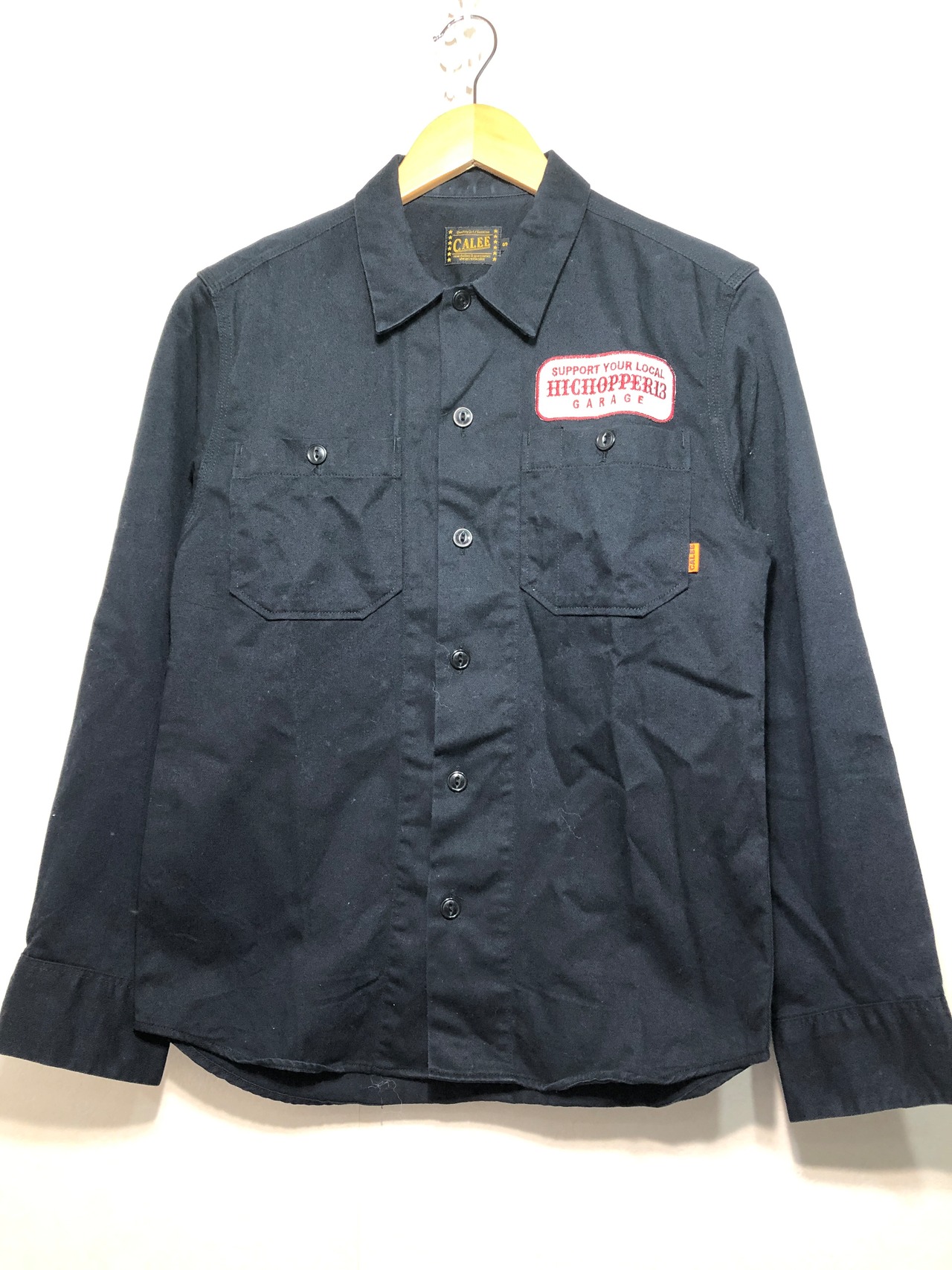 513032 CALEE 長袖 ワッペン 刺繍 ワーク シャツ S ブラック キャリー