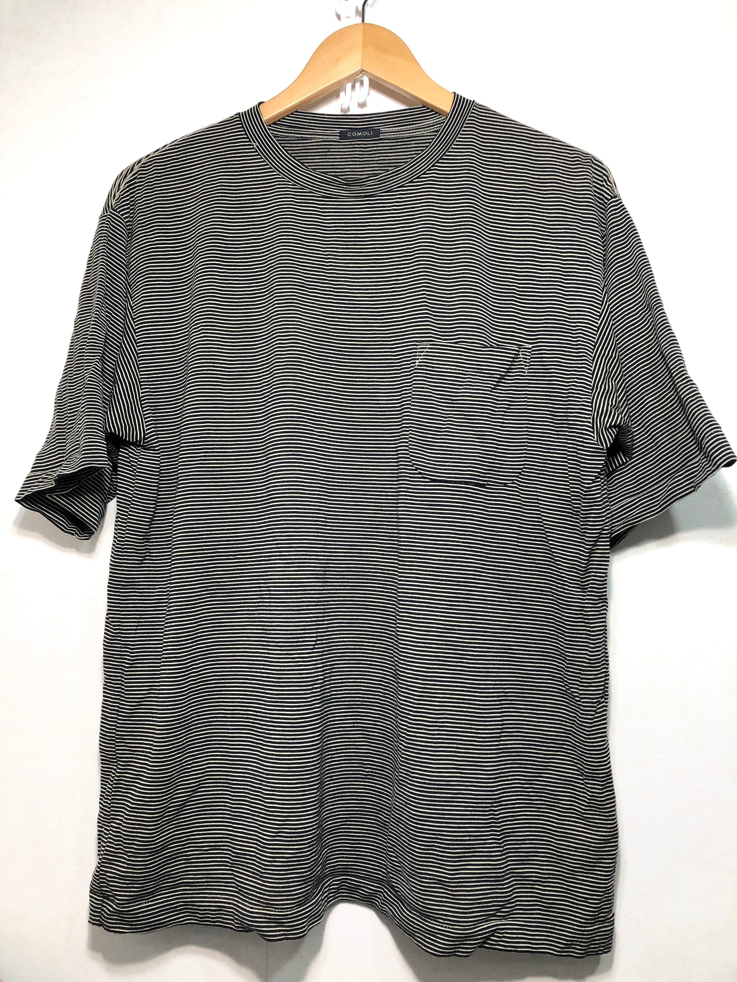 083042 COMOLI サマーウール天竺 ボーダー Tシャツ 2 コモリ X01-05013