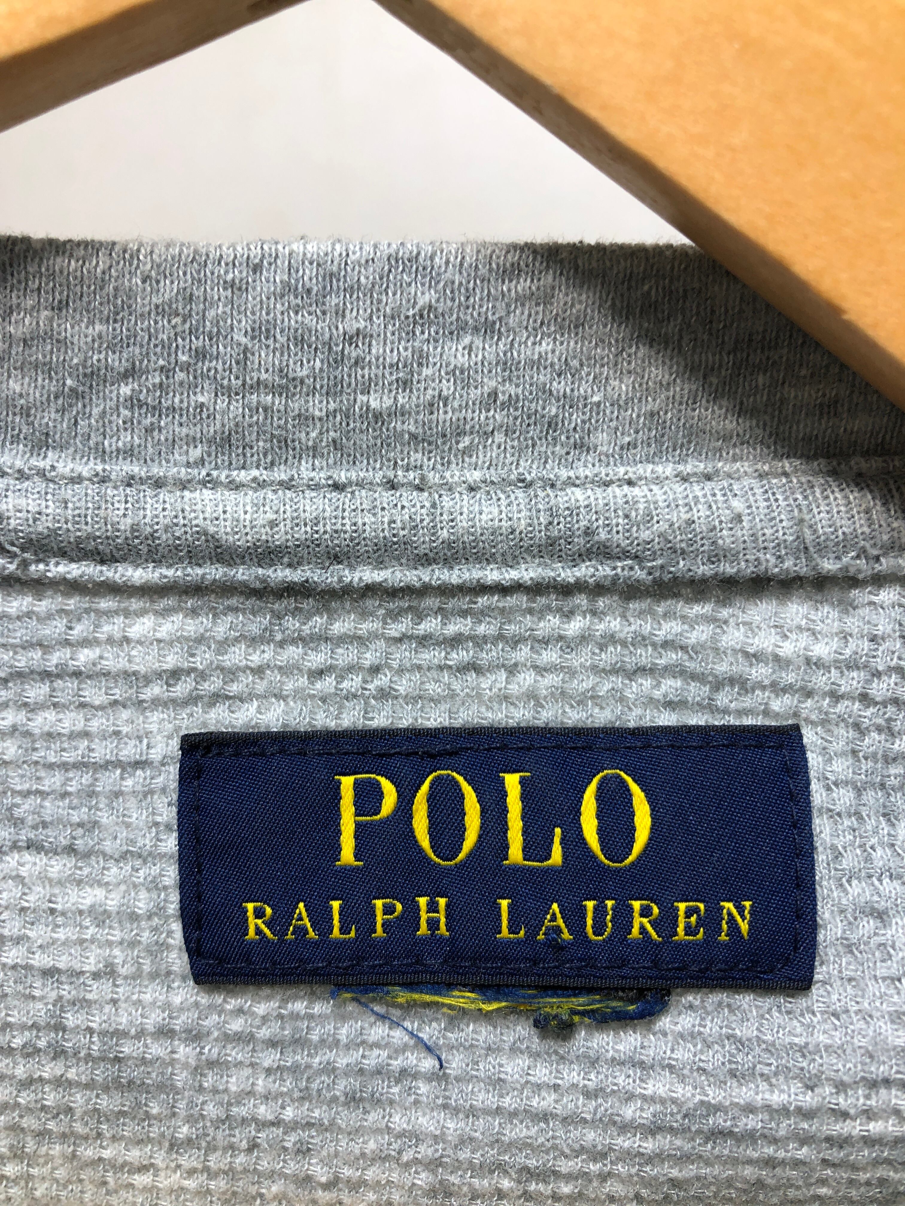 203042 POLO RALPH LAUREN 切り替え サーマル ロンT グレー カットソー ワッフル ポロ ラルフローレン