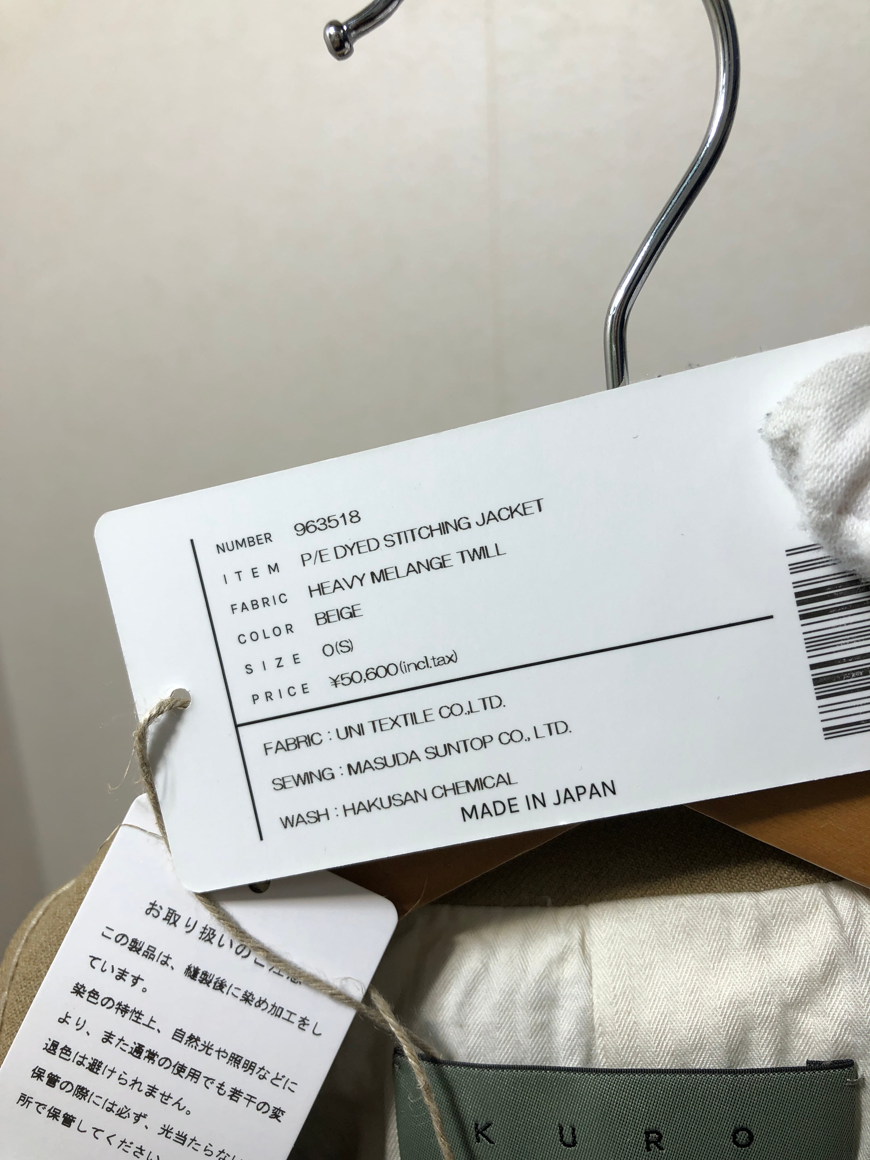 040121 未使用 KURO P/E DYED STITCHING JACKET 0 S ベージュ ダブル テーラード ブレザー スティッチン クロ